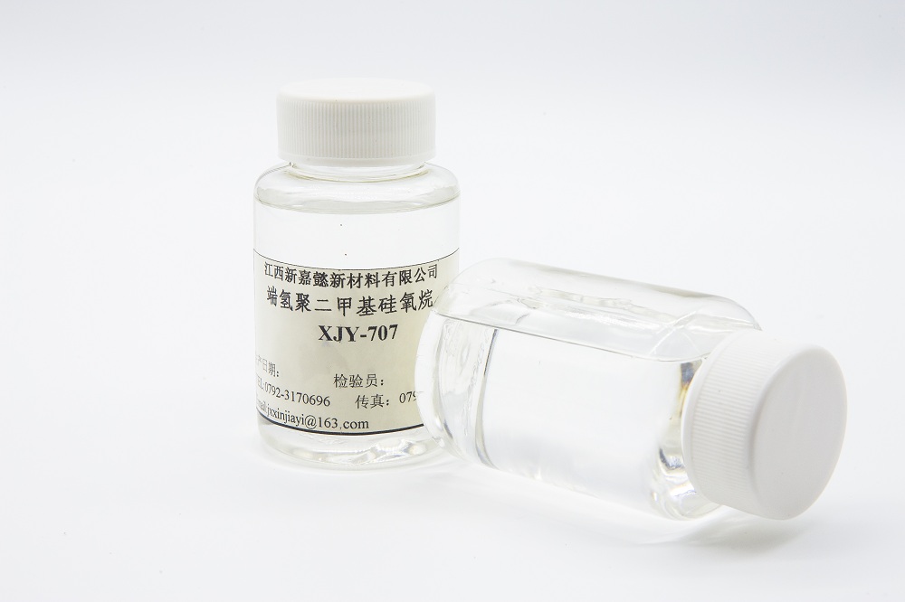 XJY-707可溶于芳香烴/石油烴類等多種有機溶劑,不溶于水,是一種用途廣泛的有機硅中間體,通常作為有機硅封端劑使用。由于分子結(jié)構(gòu)中含有活潑氫原子,可通過硅氫加成反應(yīng)合成共聚物高分子,由它們出發(fā)又可制成系列活性硅油。